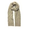 Classic beige knitted scarf with intricate cable pattern, perfect for cold weather and adding a cozy touch to your winter outfits.